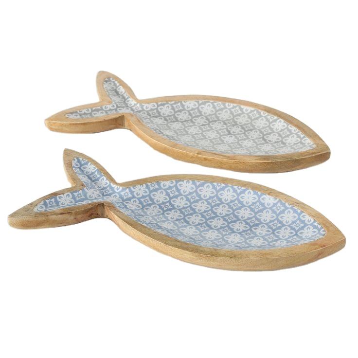 Wooden Bowl Serving Bowl Large Capacity Food Soup Bowl In Fish Shape with blue and grey color set of two