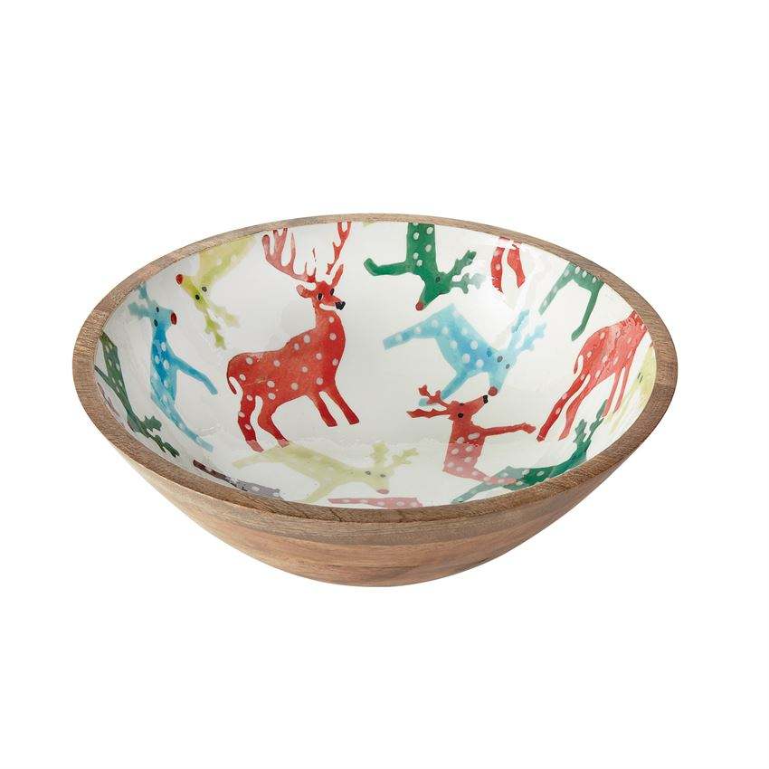 Exclusive Wooden Salad Bowl with Enamel Printed Design 100% Natural Handmade Round Bowl for Home Use and Table Decor