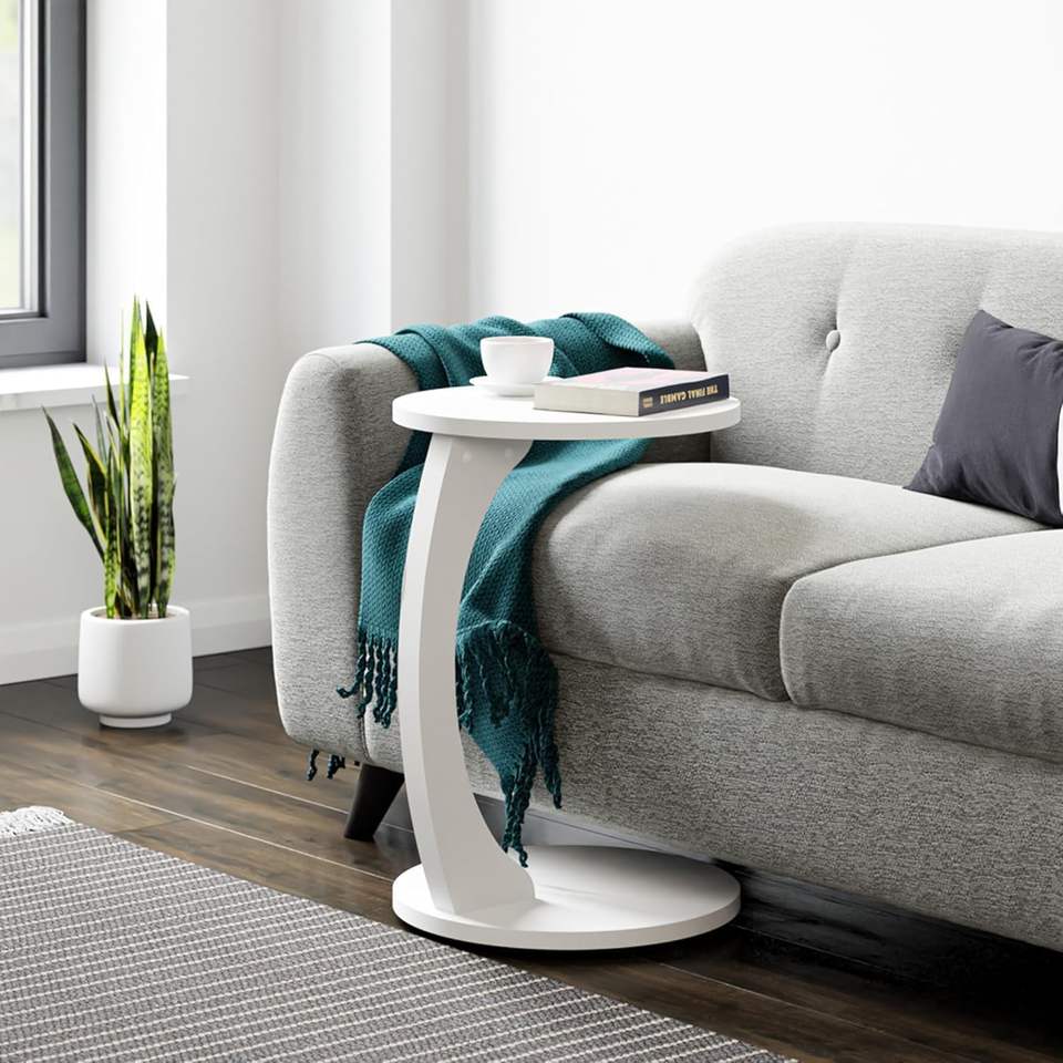 Wooden C Shaped Side Table for Sofa & Bed | Solid Wood Laptop Table | Space Saving End Table for Living Room, Bedroom & Office