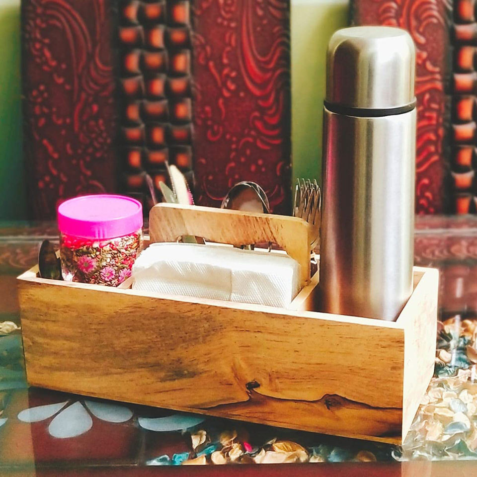 Wooden Caddy Organizer Home Office Cutlery Stand Holder Caddy Multipurpose Stand For Home Kitchen Dining