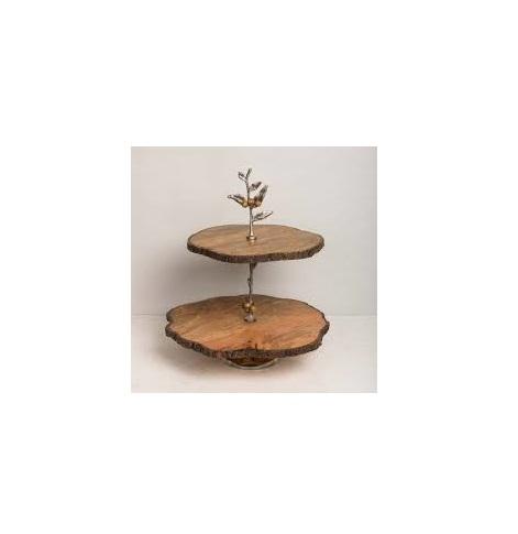 Wooden Cake Serving Stand For Wedding Birthday Party Dessert Wood Cake Stand 2 Tiers Hot Selling Party Wood Cake Stand
