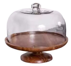 Wooden Cake Stand Luxury Design Kitchenware Tray Glass Dome Cover for Home & Bakery Wholesale Price Partyware Dessert Display