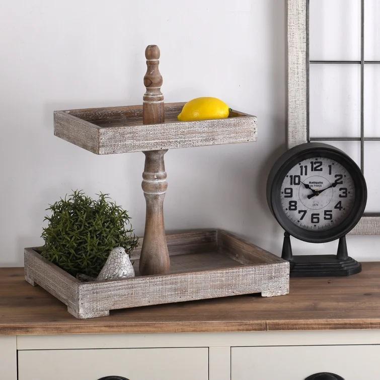 Wooden Cake Stand Round Shape 2 Tier Snacks and Fruits Serving Tray with Handle Wedding Dinnerware Resin Epoxy Mold Cake Stands