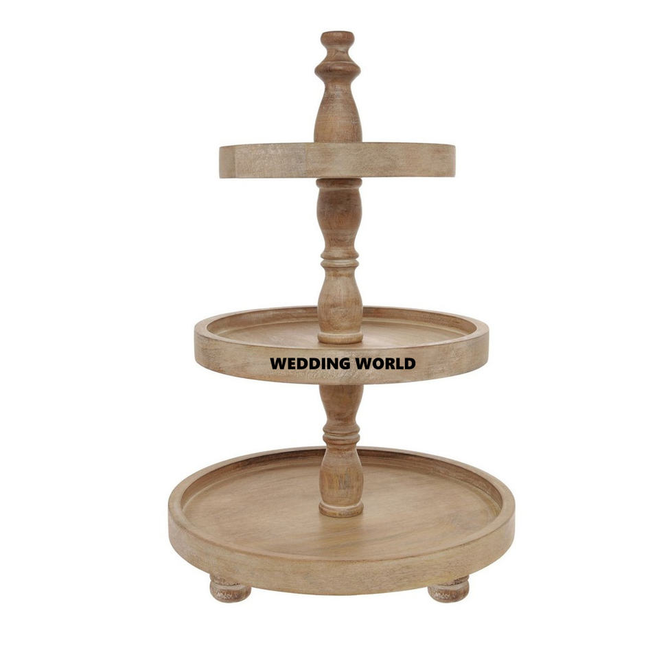 Wooden Cake Stand Two Tire Premium Quality Handmade Round Shape Table Ware Classic Stylish Designer Wooden Cake Stand