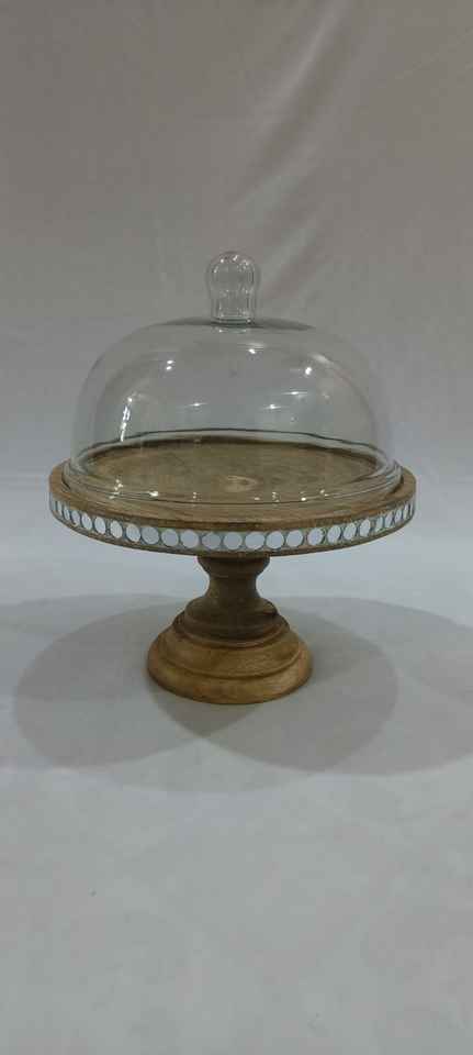Acrylic Dome on Wooden Cake Stand Round Shape for Home Bakery or Cafe for Displaying Cakes Cupcakes Desserts