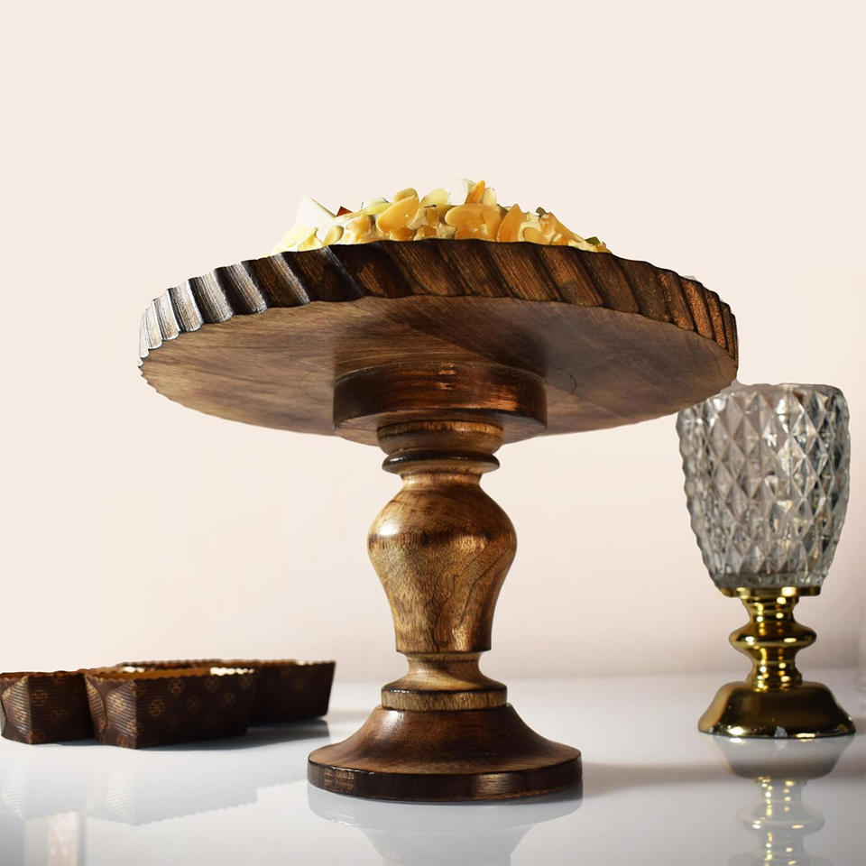 Wooden Cake Stand with Dome Multi Function Mango Wood Cake Serving Platter Wooden Dessert Display Stand Trays Factory Supply