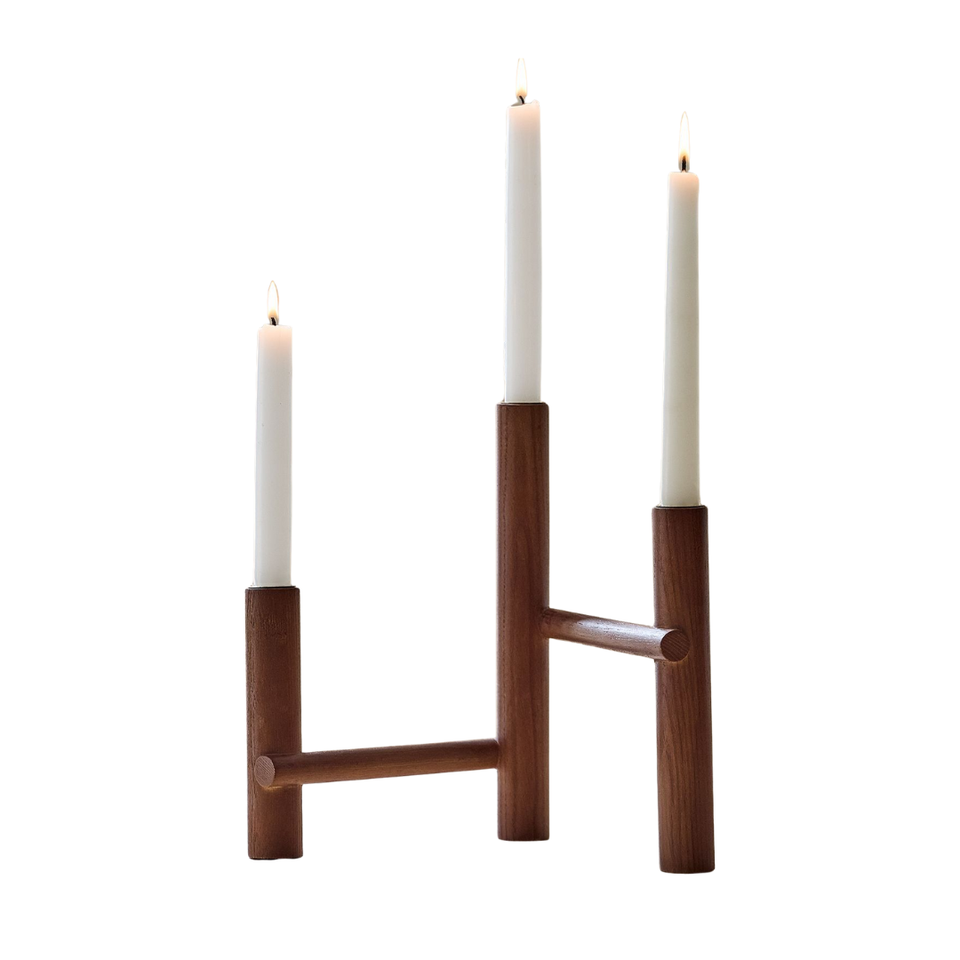 Wooden Candle Holder for 3 Taper Candles Minimalist Modern Design Rustic Solid Wood Candle Stand for Dining Table Home Decor