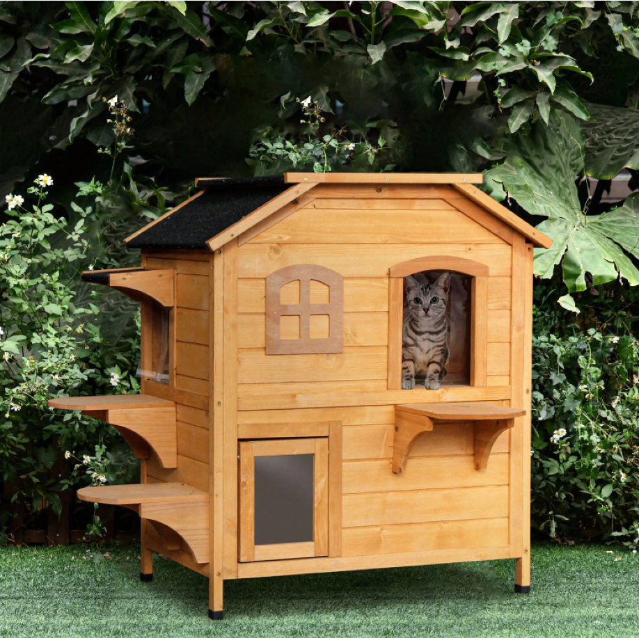 Luxury Modern Cat House Solid Wood Indoor Pet Furniture with Animal Pattern Eco-Friendly Snap Button Closure for Living Room