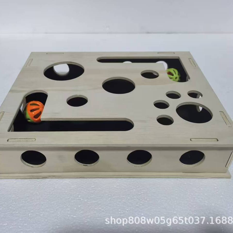Wooden Cat Maze Toy Square Solid Wood Pet Game Box For Indoor Cats Home Entertainment Natural Color 450g