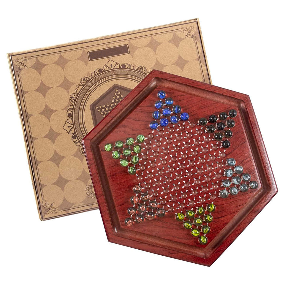 Wooden Chinese Checkers Board Game Set with 60 Glass Marbles