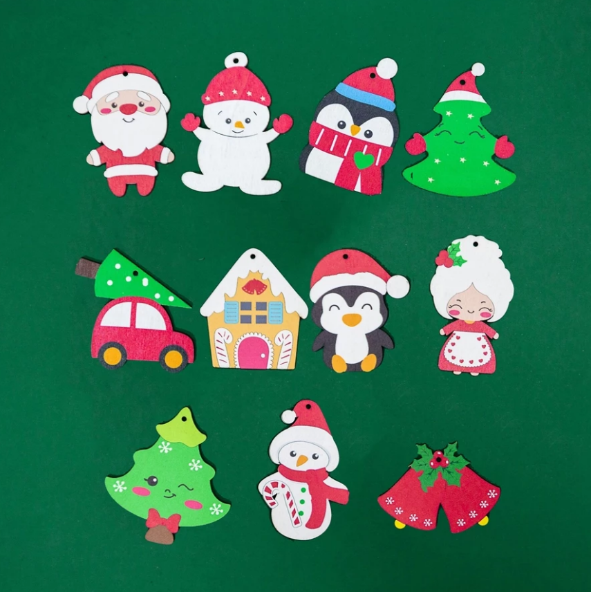 Wooden Christmas Coloring Ornaments Paintable Santa, Tree, Reindeer Tags for Holiday Decoration and Gift from Vietnam