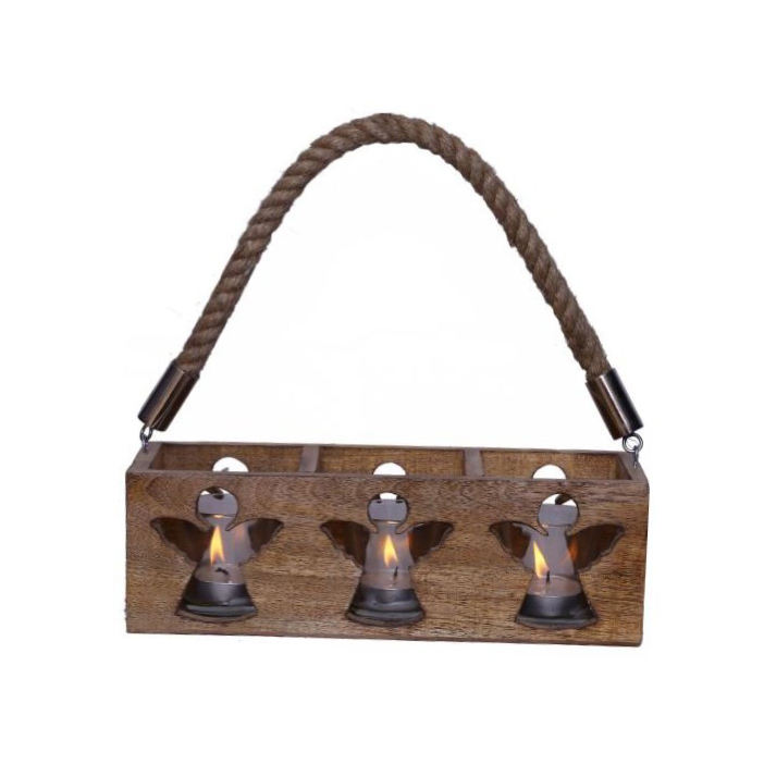 Wooden Christmas Tripal Candle Votive With Rope Handle Angel Cutting for Home & Festival Decoration Candle Votive at Low Price