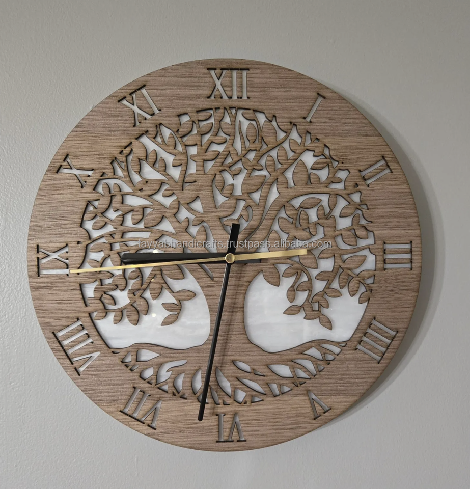 Wooden Clock Customized Silent Environmental Walnut Carved Wood Timber Wall Clock