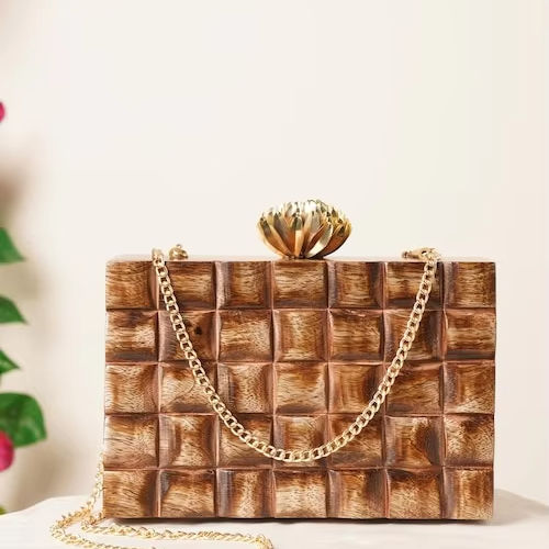 Bag & Case Features:Wooden Clutch with sling chain