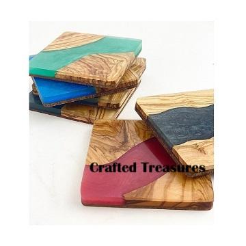 Wooden Coasters Set With Epoxy Resin White for Drinks, Modern Coasters for Bar Kitchen Home Apartment With Affordable Price