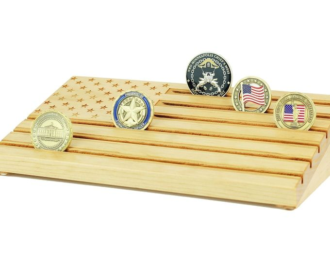 Wooden Coin Display Holder Wooden Coin Poker Chips Display Case with Protection Door