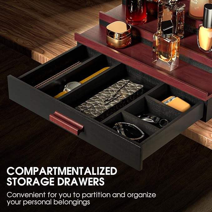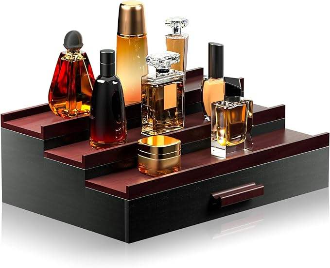 Wooden Cologne Organizer for Men 3 Tier Elevated Display Shelf With Drawer Storage Perfume Organization