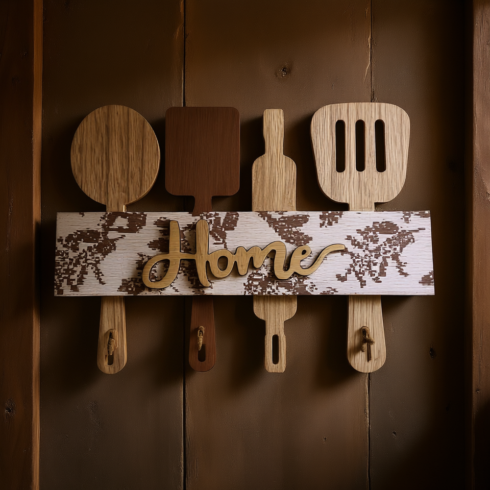 Wooden Craft Decor Wall Sign Home Kitchen Utensil Holder Handmade Wood Art Piece Custom Shape Cut Out Design