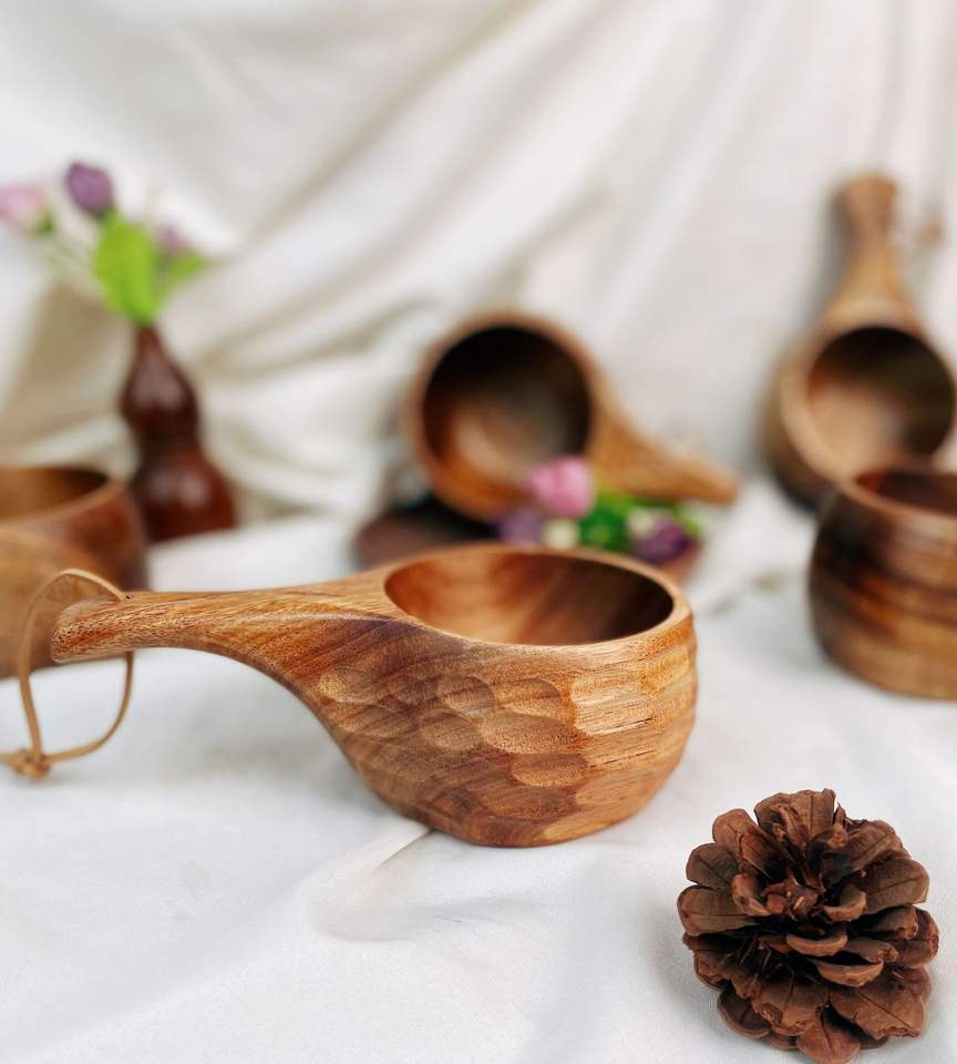 Wooden Cup Camping Cup Nordic Style Handmade Natural, Portable Wood Mug Drinking Cup for Coffee, Tea and Milk