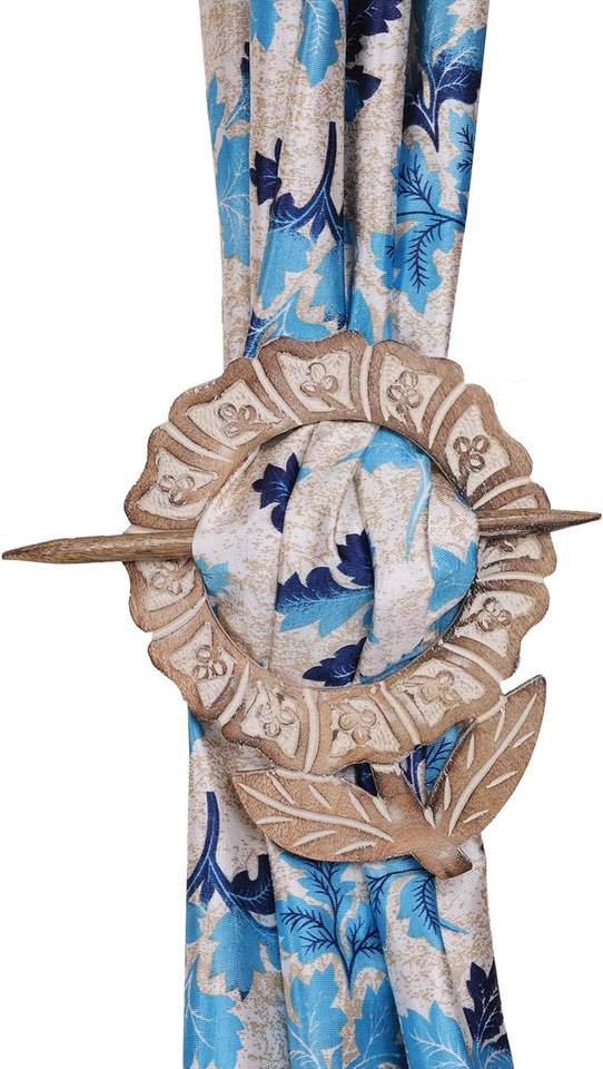 Wooden Curtain Tieback Set of 2 Sunflower Shaped Vintage Rustic Drapery Holdback Traditional Window Decorative Holder