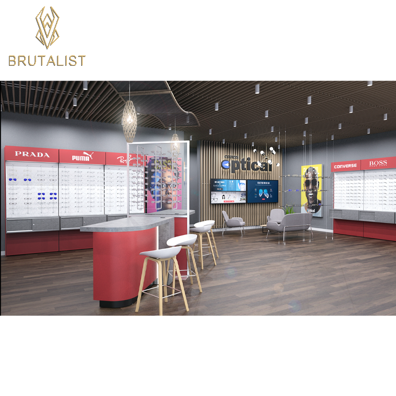 Wooden Custom Optical Store Fixtures Sunglasses Shop Decoration Showcase with Wood Veneered MDF for Retail Glasses Display