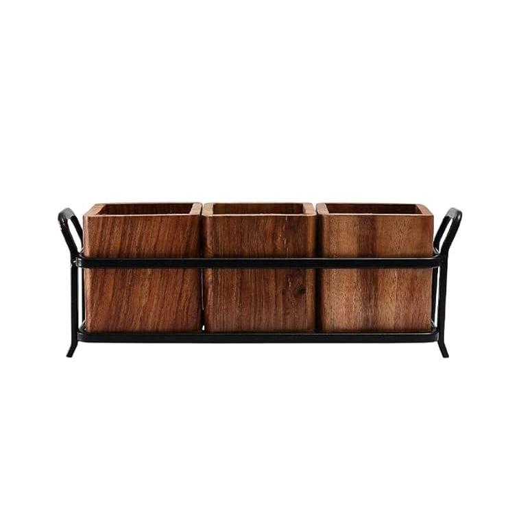 Wooden Cutlery Holder for Kitchen Dining Table Organizer with Multiple Compartments for Spoons Forks Knives Storage