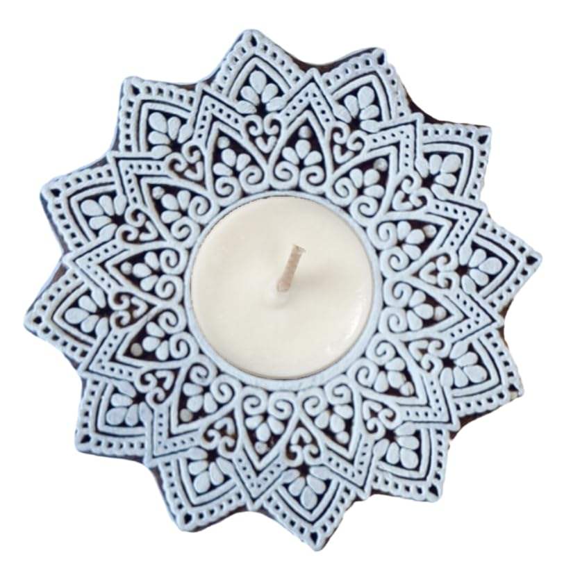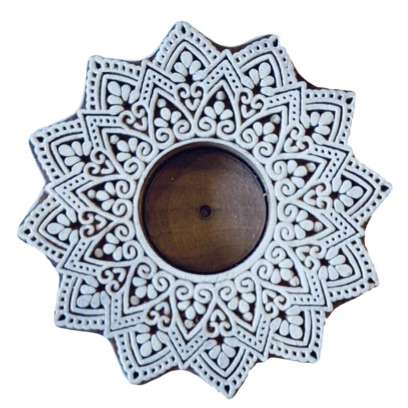 Wooden Decorative Candle Holder with Floral Mandala Pattern, for Diwali, Deepawali, Candle, tealight Holder, Gifting,10 cm