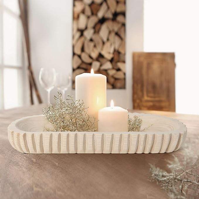 Wooden Decorative Dough Bowl for Home Decor, Unique Centerpiece Bowl, Wood Bowl with Hand (16.3"x 6" Light Wood Color)