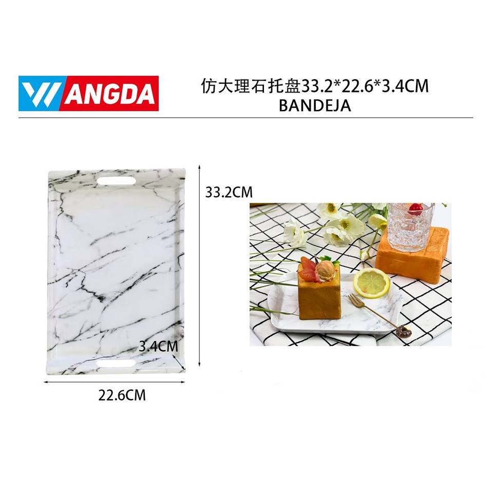 Wooden Decorative Imitation Marble Tray 33.2*22.6*3.4CM Rectangle Serving Tray for Food for Kitchen Use