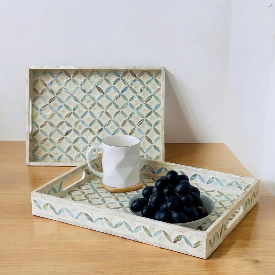 Product name:Serving Tray Inlay Nacre Ottoman Tray with Handle Coffee Tray