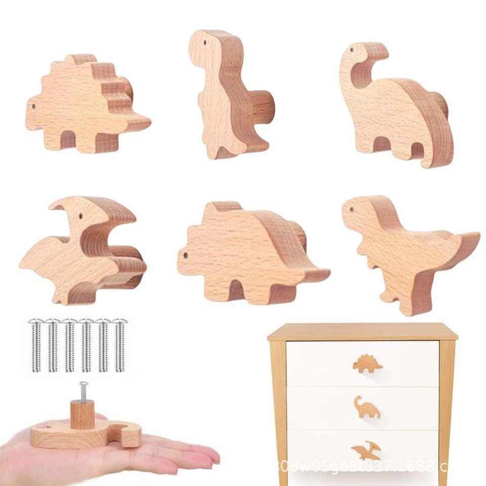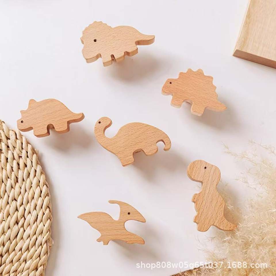 Wooden Dinosaur Wall Hooks Natural Color Eco-Friendly Solid Wood Childrens Room Coat Hanger For Boy Girl