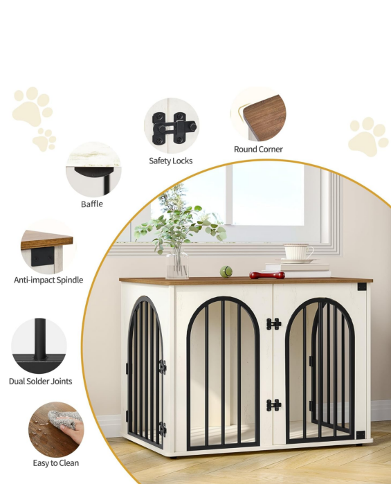 Wooden Dog Crate Furniture, Indoor Kennel Dogs Cage Heavy Duty Dog Crates Decorative Pet House