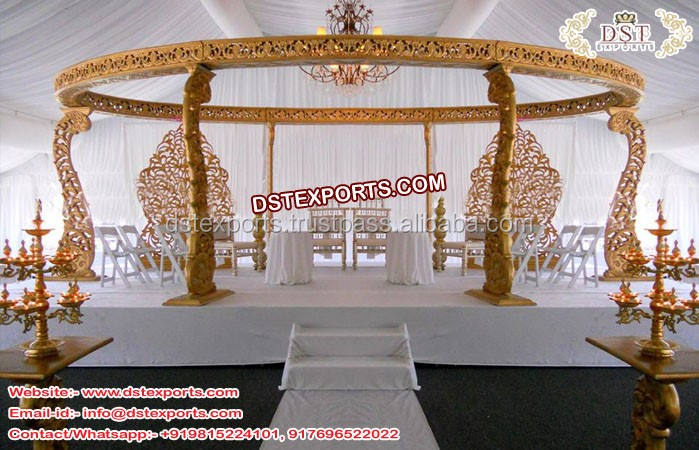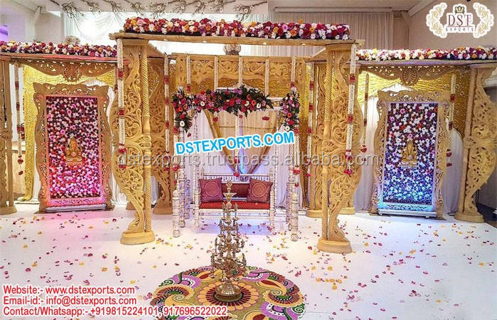 Wooden Double Pole Wedding Butterfly Mandap Antique Wooden Hand Carved Wedding Mandap Royal Butterfly Double Pole Wedding Mandap
