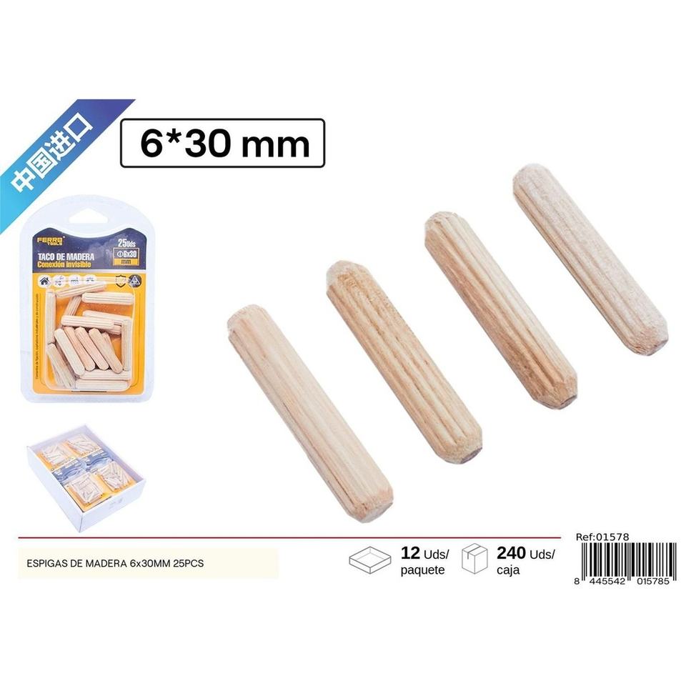Wooden Dowels 6x30mm 25PCS - Furniture Accessories