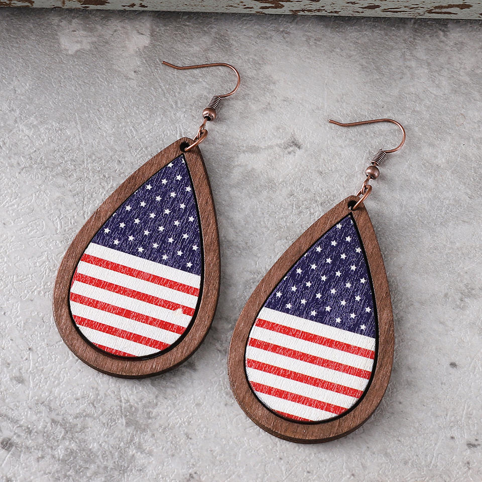 Unionen 1191 Women's Trendy Geometric Drop-Shaped Polygon Earrings Blue White Red Star Striped Pendant Hypoallergenic Made Alloy