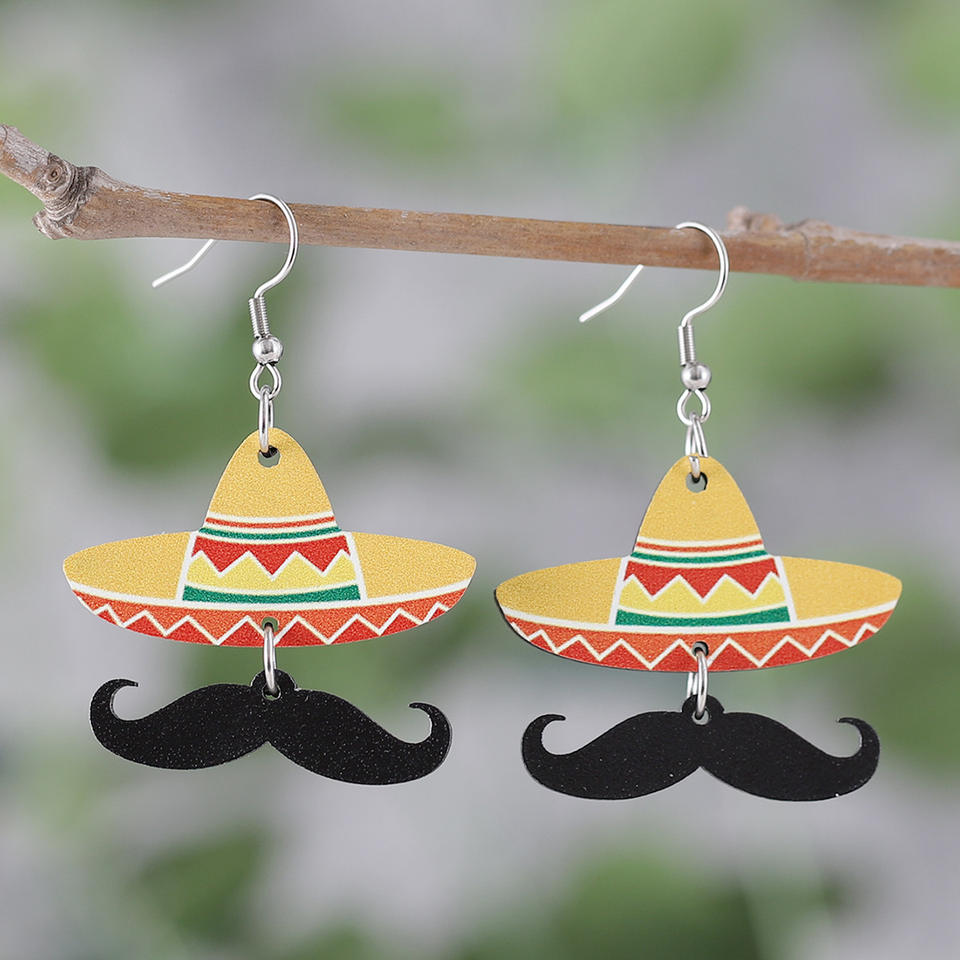 Wooden Earrings Mexican Colored Tortillas Straw Hat Beard Pendant Earrings for Women Uionen 1159