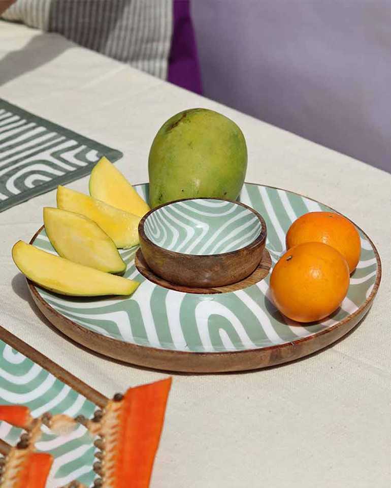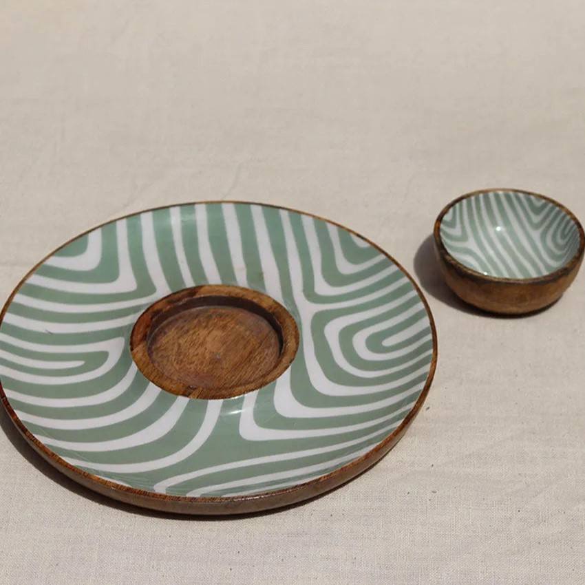 Wooden Enamel Chip & Dip Platter Handmade Snack platter with small Bowl for Chips Dip Nuts and Party Appetizers for home & party