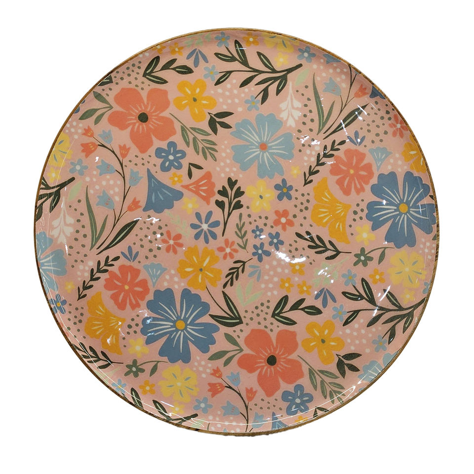 Wooden Enamel Floral Printed Cake Stand Round Dessert Display Pedestal Decorative Serving Stand for Home Kitchen Party Use