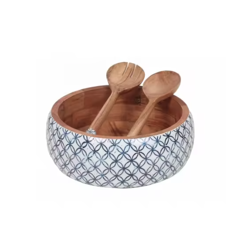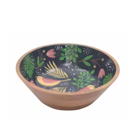 Wooden Enamel Printed for Mango Wood Bowl Decorative Tray for Iftar Serving Handcrafted Printed Bowl