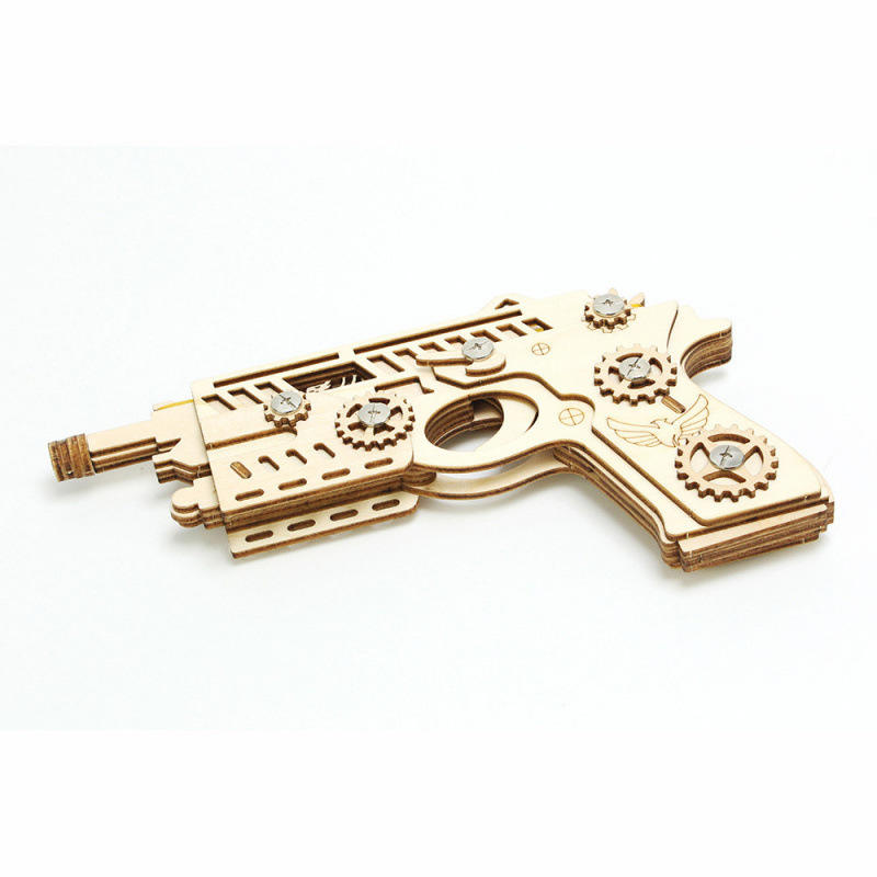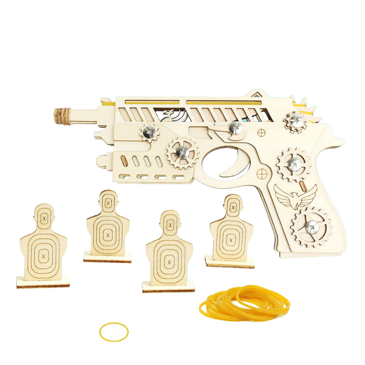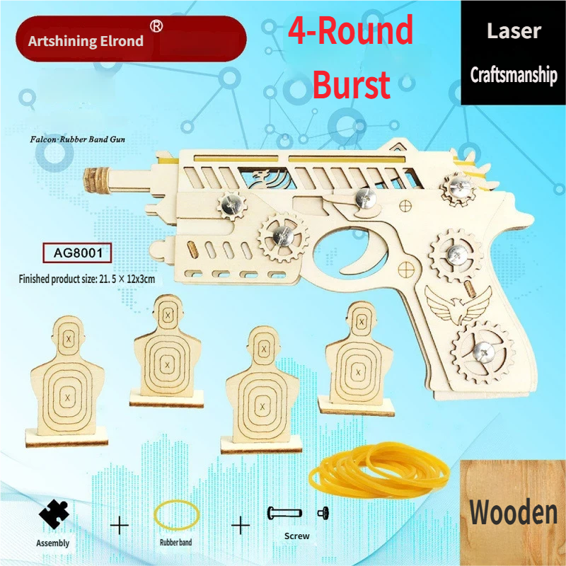 Wooden Falcon 3D Puzzle Model Rubber Band Gun Manual Power For Children Age 8 13 Years Natural Wood Color