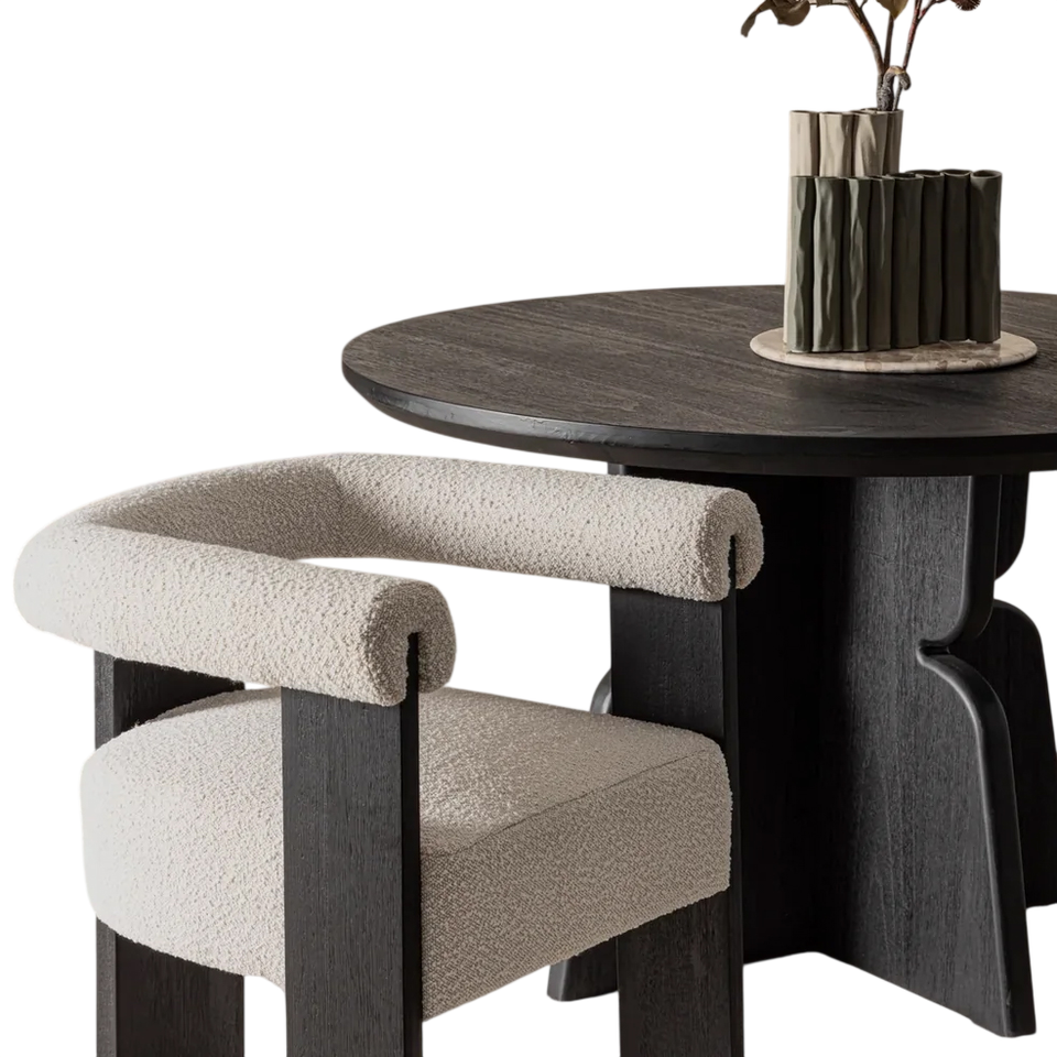 Wooden Foldable 4-Seater Eco-Friendly Dining Table Modern New Design Deep Black Sandblasted Finish Stylish Pedestal Base Home