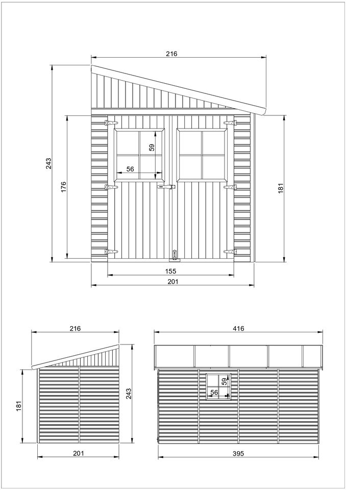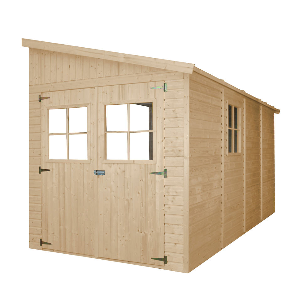 Timbela M340 8m 2-Sided Wooden Garden Shed 17mm Panels Easy Assembly Outdoor Workshop Space 216 X 416 X 243cm Natural Dimensions