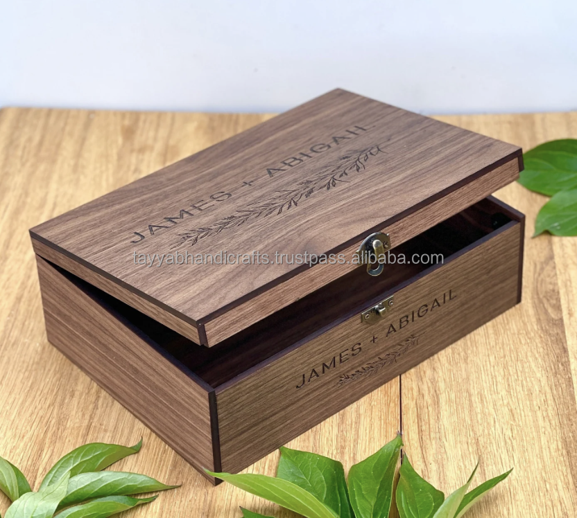 Wooden Gifts Box Solid Wooden Boxes for Gifts for Keepsake Carved Wood Box for Anniversary Wedding Memory Birthday