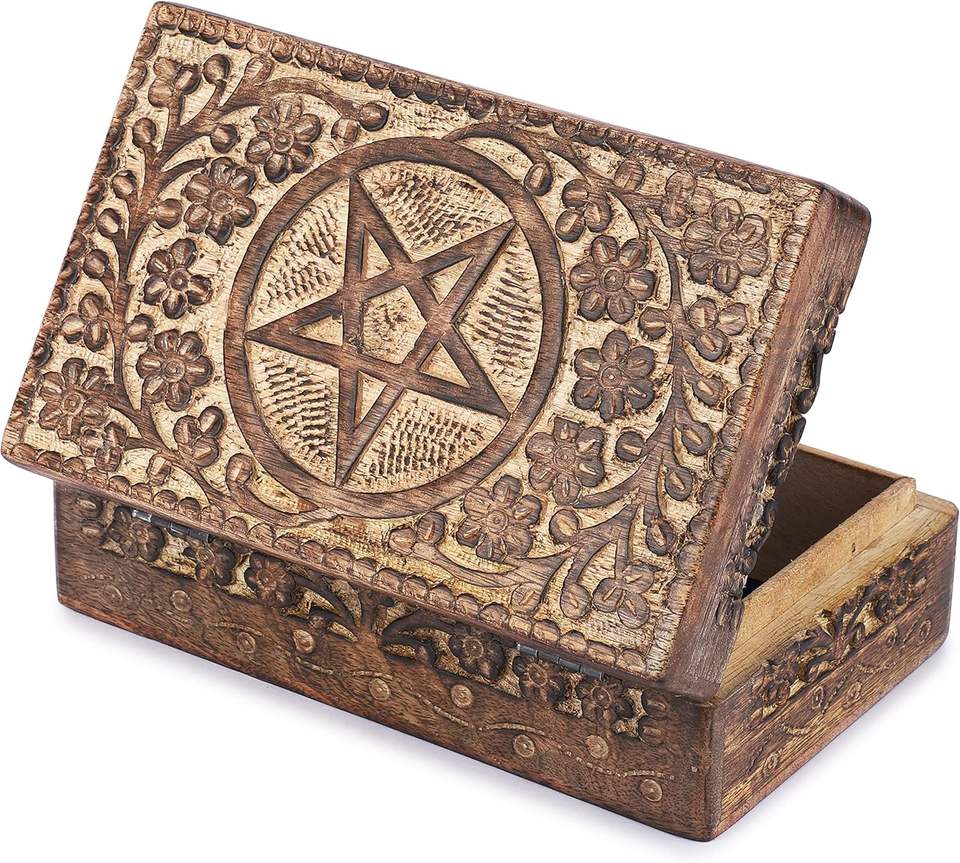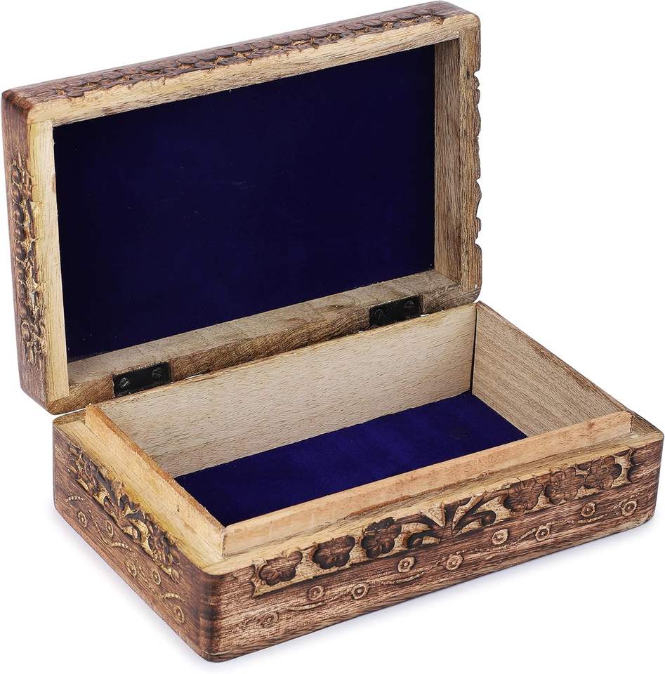 Wooden Hand Carved Decorative Jewelry Box Star Circle Carvings Vintage Keepsake Storage Organizer Travel Treasure Trinket Holder