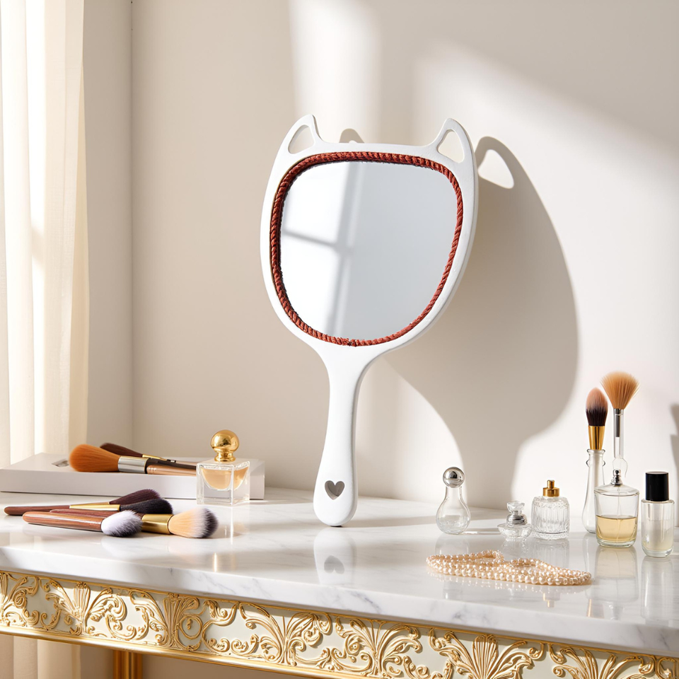 Wooden Hand Mirror Rustic Adorable & Durable Wood Handle with Hanging Hole Vanity Hand Mirror for Skincare Everyday Personal Use