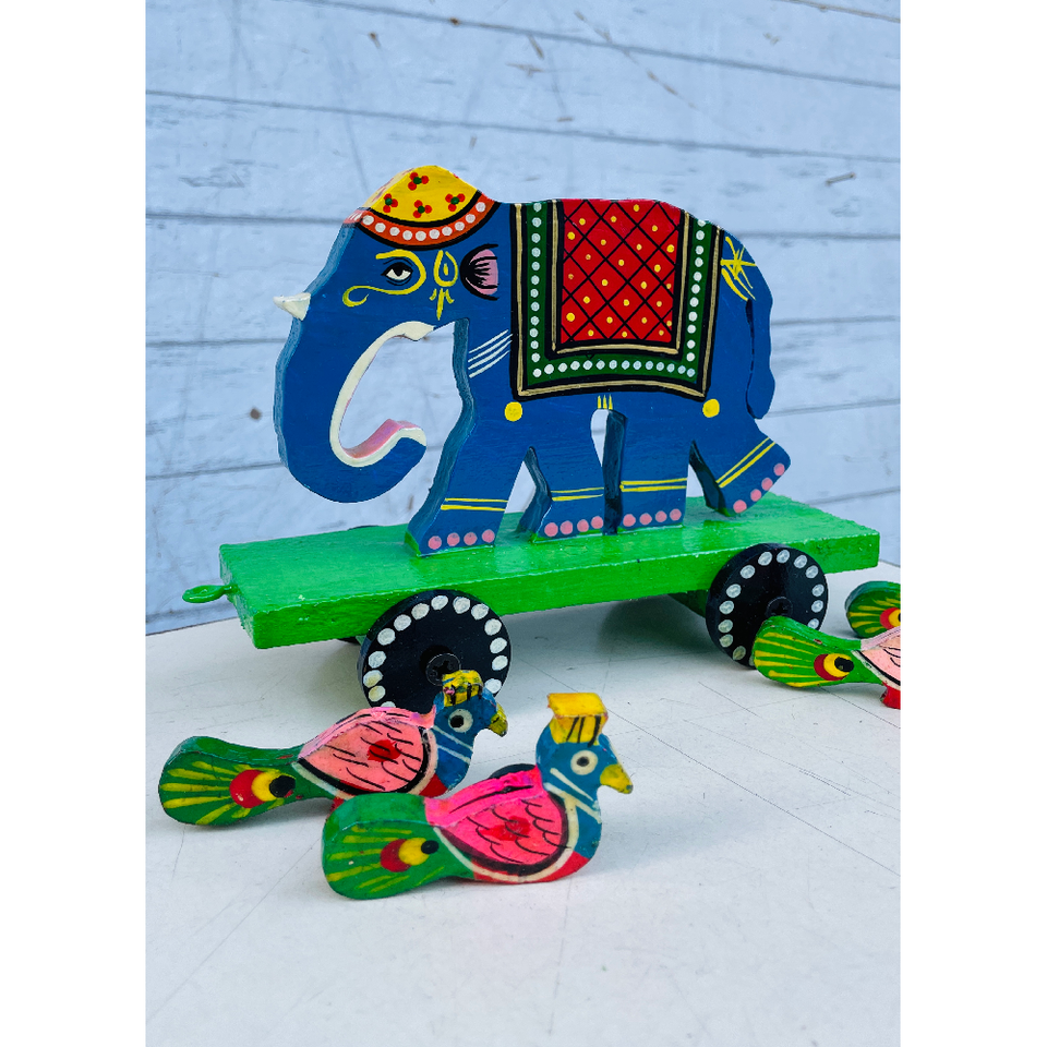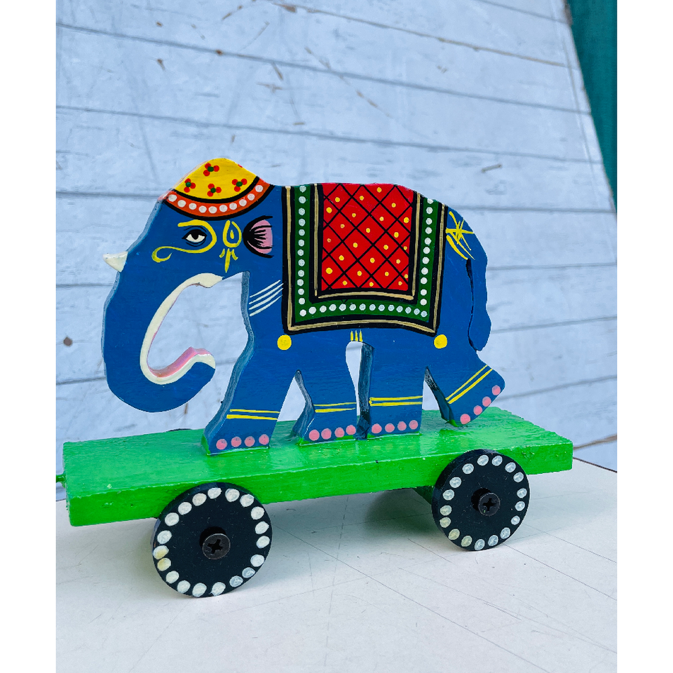 Wooden Handcrafted Elephant Toy on Wheels Traditional Pull Along Animal Figurine Decorative Handicraft Gift for Kids Home Decor