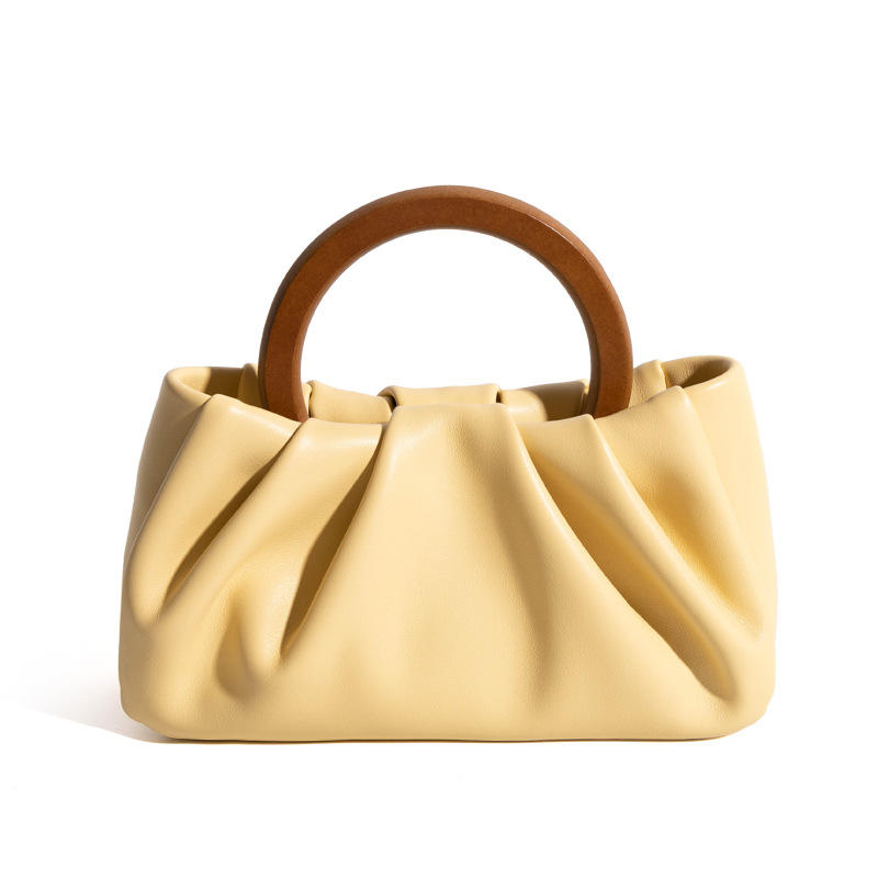 Wooden Handle Women's Mini Cloud Handbag Solid Color Polyester Lining Promotional Shoulder Bag with Chain Belt