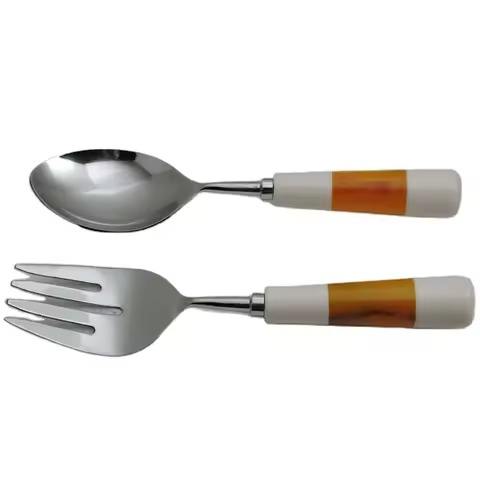Wooden Handle with Thin Metal Ring Around Stainless Steel with Copper Plating Eco-Friendly Dishwasher Safe Salad Server