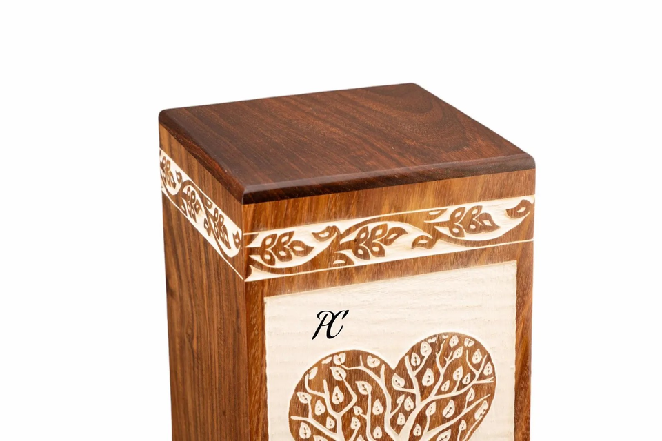 Wooden Heart Cremation Urn Rosewood Funeral Urn for Ashes Memorial Keepsake Decorative Cremation Urn for Ashes