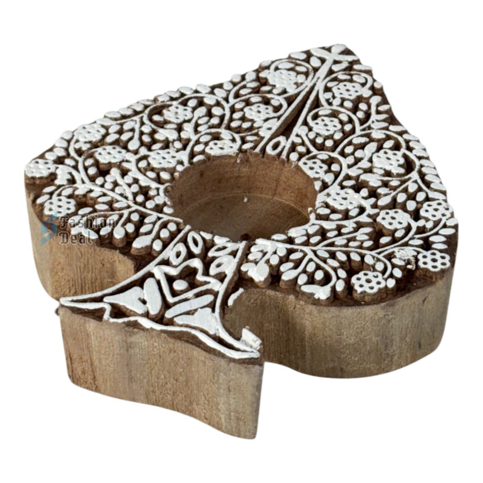 Wooden Paan Shape Handmade Eco-Friendly 2 Color Print Tealight Holder (Without Tealight Candle) Rajasthan Festival Gifting